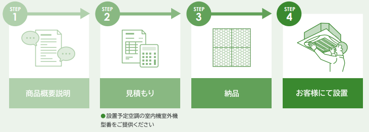 セントラル空調(全館空調)やビルトイン型・天井埋込ダクト型等の場合は、設置工事が必要な場合がございますので、まずご相談ください。